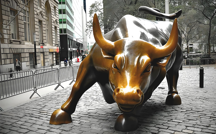 紐約曼哈頓的華爾街銅牛,無(wú)疑是全球最具影響力的銅牛雕塑之一。這尊由意大利裔藝術(shù)家阿爾圖羅?迪?莫迪卡創(chuàng)作于 1989 年的作品,重達(dá) 3.2 噸,以肌肉虬結(jié)的軀體、昂首前沖的姿態(tài),成為 “牛市” 的象征。其誕生背景頗具傳奇色彩:在 1987 年美股崩盤(pán)后,藝術(shù)家自掏腰包 36 萬(wàn)美元鑄造銅牛,連夜安放在紐約證券交易所前的圣誕樹(shù)下,寓意 “經(jīng)濟(jì)復(fù)蘇”。盡管初期因 “非法放置” 引發(fā)爭(zhēng)議,但民眾對(duì)它的熱愛(ài)最終讓其落戶于百老匯大街,成為紐約的城市名片。2009 年,中國(guó)國(guó)旗首次在銅牛旁升起,見(jiàn)證了中美關(guān)系的深化;而 2019 年的搬遷計(jì)劃,則引發(fā)了全球?qū)ζ湮幕瘍r(jià)值的再思考。這尊銅牛不僅是金融市場(chǎng)的晴雨表,更傳遞著逆境中昂揚(yáng)向上的信念。